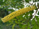 Inflorescências de pedúnculo longo, com flores amarelas, formadas principalmente em março-abril.