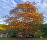 Porte de 12 a 15 metros. Tronco reto e folhagem decídua. As folhas são grandes e mudam de coloração de verde para marrom-avermelhada no outono-inverno. Floresce nos meses da primavera e os frutos possuem uma amêndoa dura e comestível.