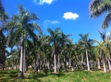 Tronco simples, colunar, uniforme e elegante, com palmito grande e aparente no topo. As folhas são pinadas grandes e os frutos cilíndrico-alongados e arroxeados.